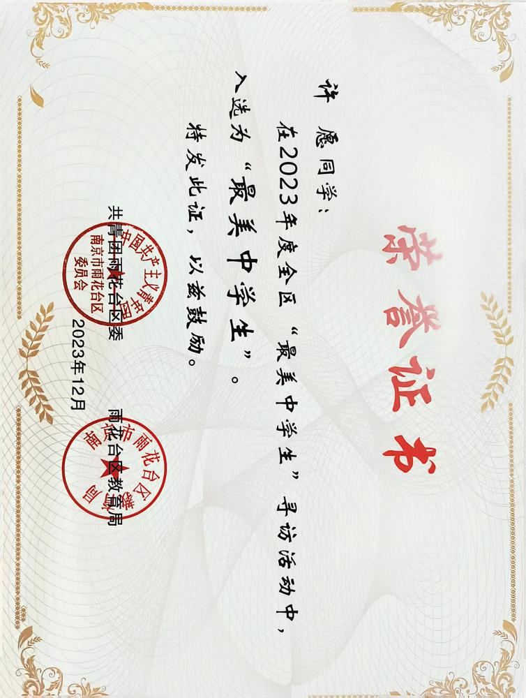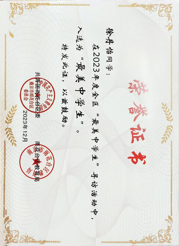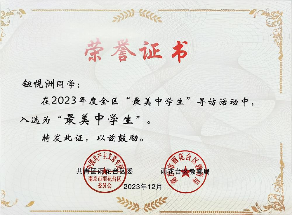 【喜报】我校徐丹怡、钮悦洲、许愿三位同学在2023年度全区“最美中学生”寻访活动中,入选为“最美中学生”