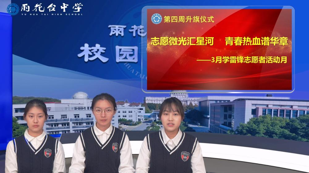 3月3日,我校举行了第四周升旗仪式,主题为 “志愿微光汇星河,青春热血谱华章”。担任本次升旗任务的是高二(7)班的倪苏悦、金雨两位同学。