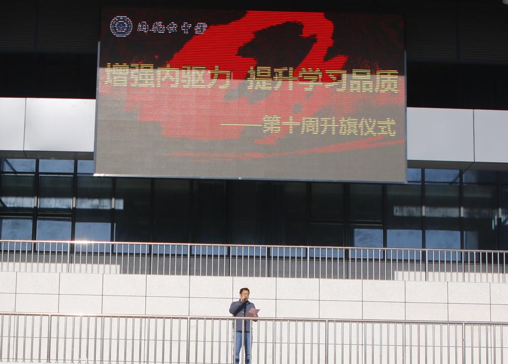 4月14日,我校举行了第十周升旗仪式,主题为“增强内驱力,提升学习品质”。担任本次升旗任务的是高一(1)班的刘安怀、舒昶两位同学。