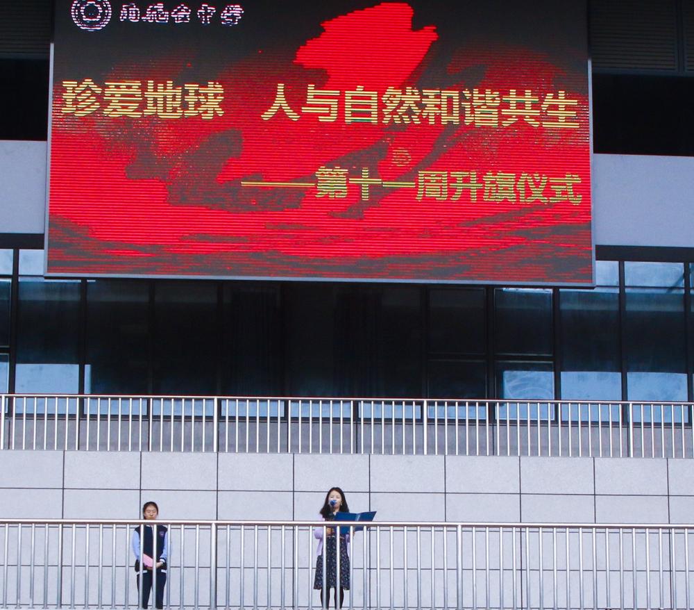 4月21日,我校举行了第十一周升旗仪式,主题为“珍爱地球,人与自然和谐共生”,担任本周升旗任务的是来自高一(2)班沈雨涵、张鑫林两位同学。