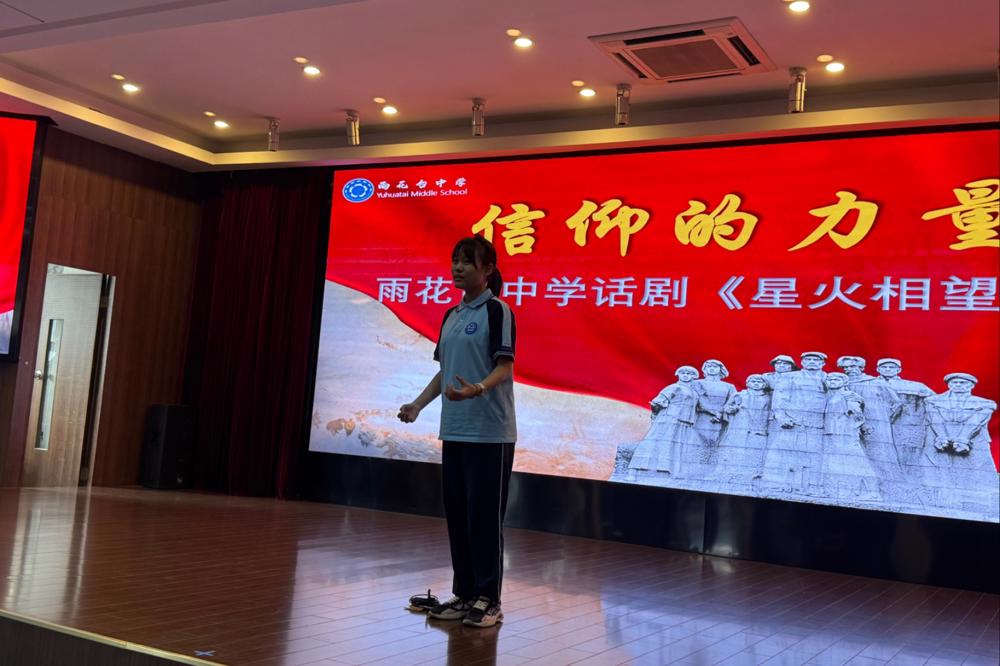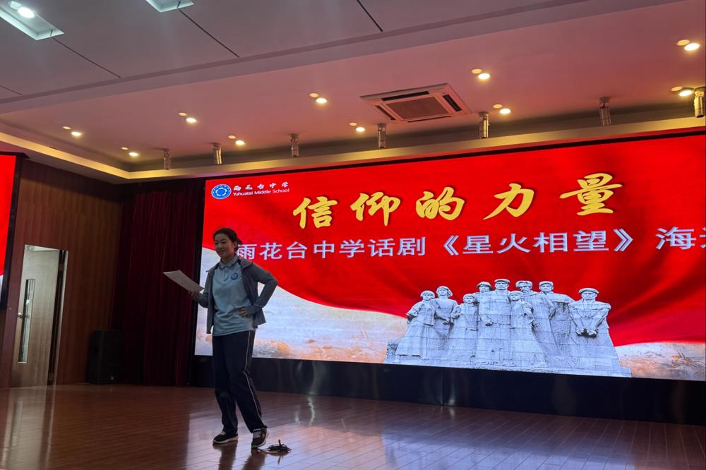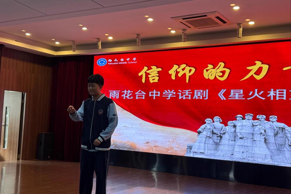 话剧《星火相望》以革命烈士石璞为原型创作。该剧讲述了现代高中生林小雨与一位和她同龄的烈士——1930年的金陵大学物理系学生石璞——产生了跨越时空的精神联结,石璞对信仰的坚定和对未来光明的向往,深深震撼了林小雨,从而解决了生活的迷茫并找到了学习的意义。我们在雨中的校园里排演《星火相望》,不仅是对这位英烈最深切的缅怀,更是对雨花英烈精神中青春担当与信仰力量的生动传承!