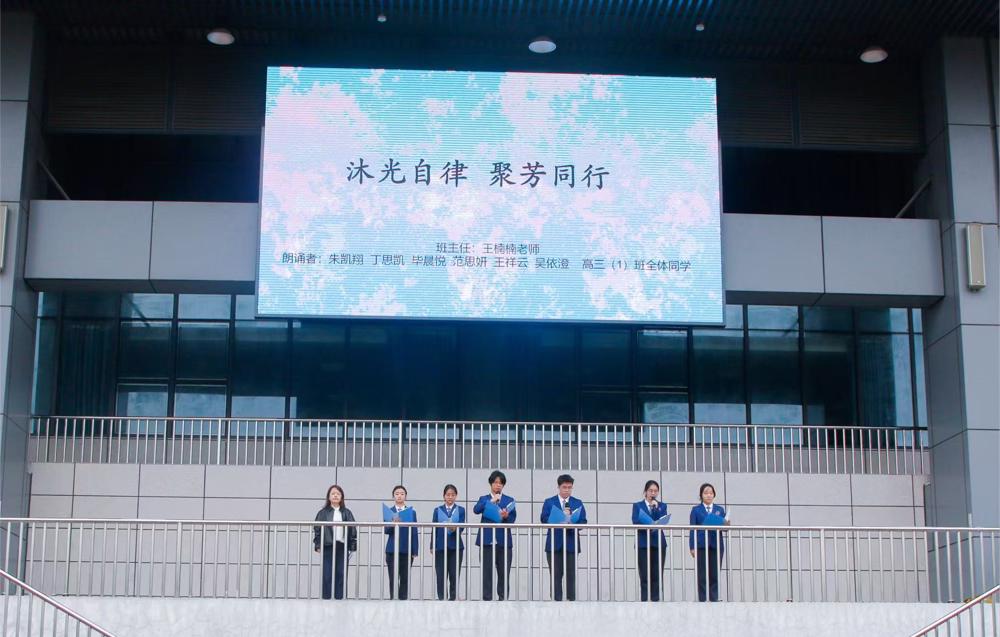 随后,荣获“模范班级”称号的高三(1)班班主任王楠楠老师带领班级学生代表作了国旗下主题发言,她结合校园学习与班级建设实际,深入诠释了“自律立身、聚力同心”的深刻内涵,号召全体同学以自律筑牢成长根基,以团结凝聚奋进力量,在求学路上勇攀高峰、逐光前行,引发全场师生强烈共鸣。