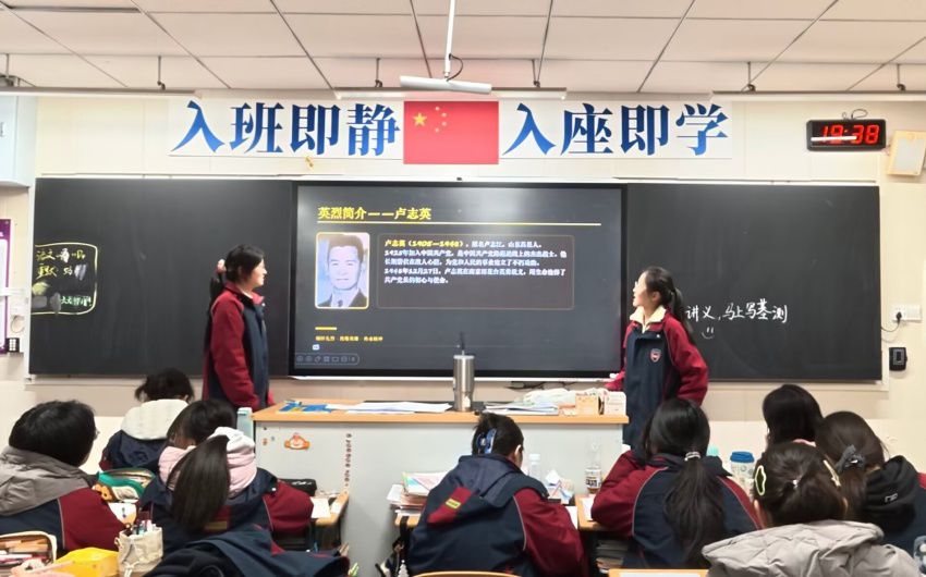 为保障活动质量,团支书陶思妍统筹分工,全班以志愿服务小组协同作战:史料整理组金雨晨等四人梳理核对史料、校正疏漏;图片设计组冯婉婷、杨子萱精心设计图文展现烈士生平;PPT制作组季欣苗等三人打造富有感染力的展示课件;演讲组韦语涵、苗思琪打磨宣讲稿深情再现烈士事迹;活动设计组景欣诗然等五人负责环节与视觉设计;新闻宣传组欧阳瑞楠、阮子轩记录成果、撰写新闻。各组利用课余时间反复打磨,以热情与严谨确保活动有深度、有温度。