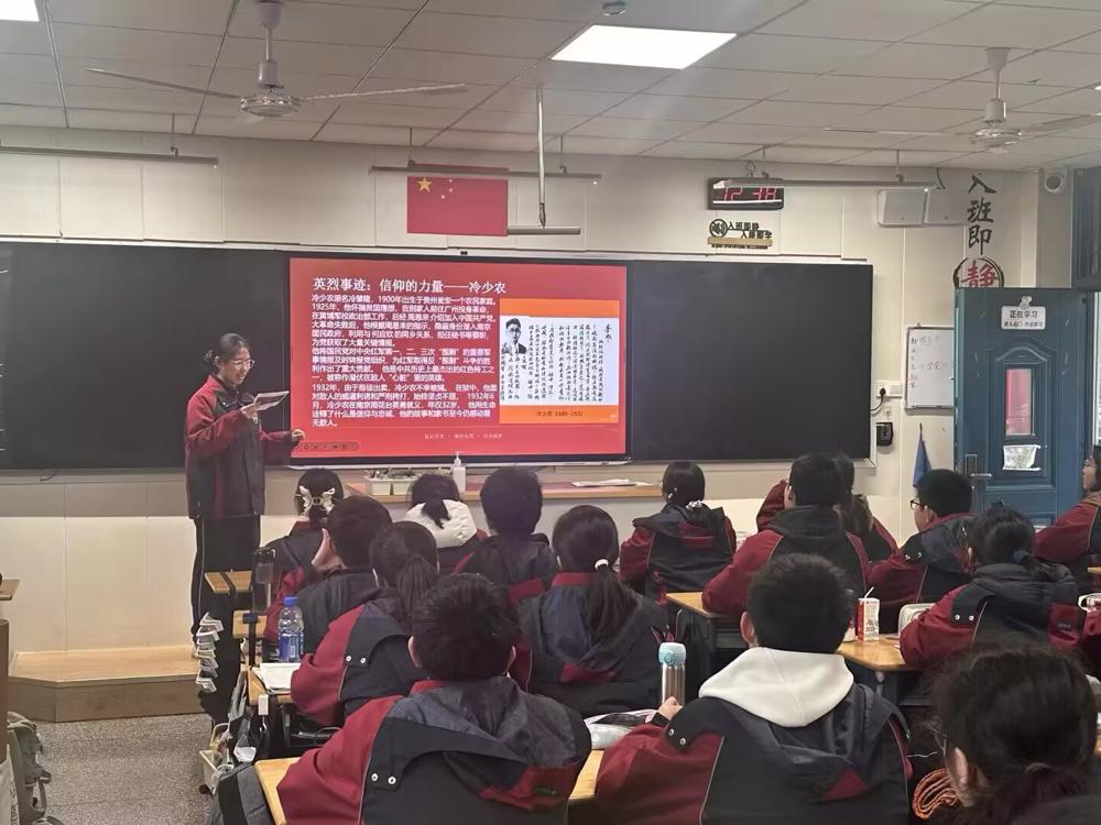 为深化团员思想引领,传承红色基因,厚植爱国情怀,2026年3月20日,高一(6)团支部以“赓续英烈精神,汲取奋进力量”为主题,组织开展团员专题教育活动,通过沉浸式讲解与深度研讨,让全班同学在历史与现实的交汇中感悟信仰的力量。
