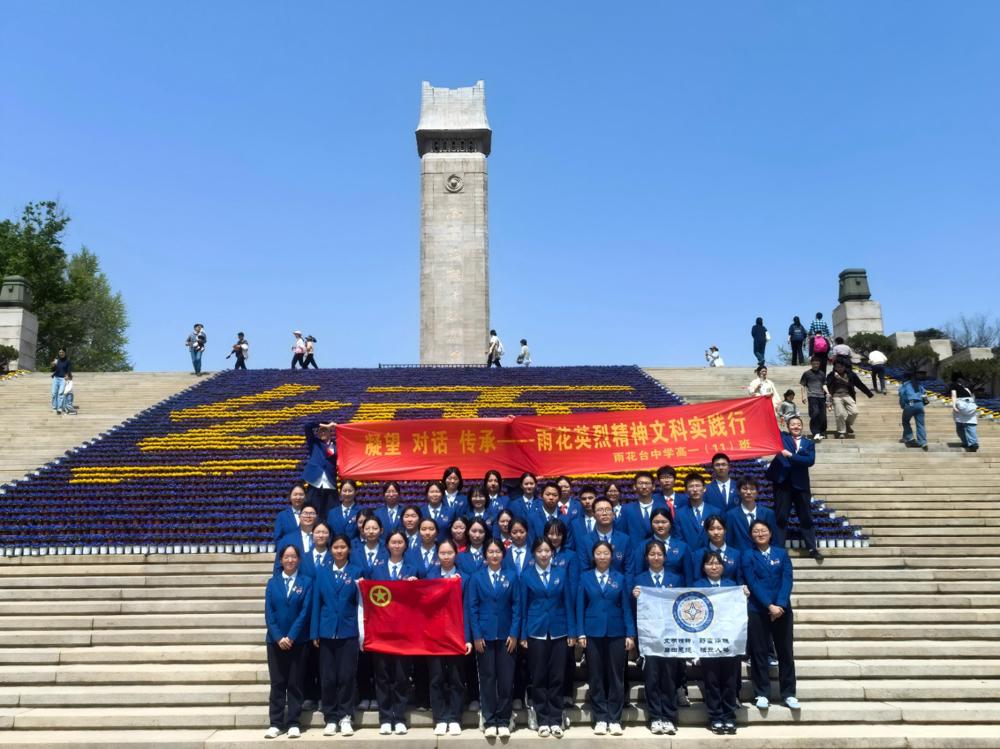 4月5日,雨花台中学高一(11)团支部全体同学徒步前往雨花台烈士陵园,以志愿者的身份参与“雨花清明祭”特别活动,开展红色文化宣讲与祭扫服务。烈日当空,队伍绵延不绝,同学们用脚步丈量信仰之路,以汗水致敬英烈忠魂。