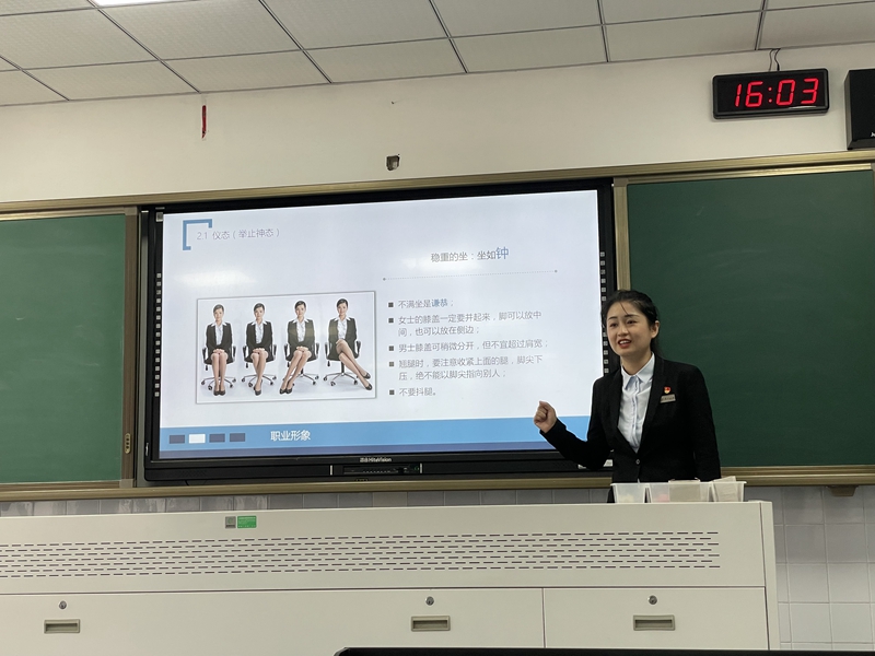 在进行礼仪培训时,雨花台烈士纪念馆的老师以丰富的知识、简明的语言、鲜活的实例,通过讲解、示范、场景模拟等多种方式,向同学们传授了仪容、仪表、仪态等方面的规范要求,并向大家提出了宣讲工作中的一些建议,使人受益匪浅。同学们聚精会神地听讲并作下记录。