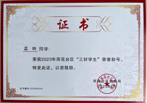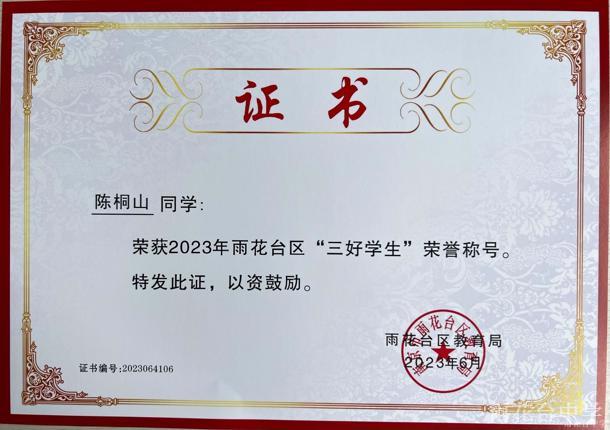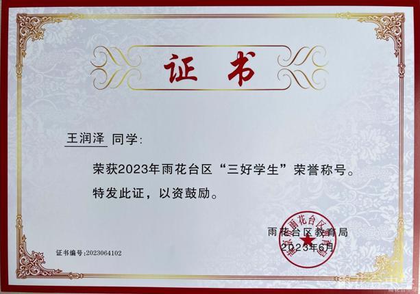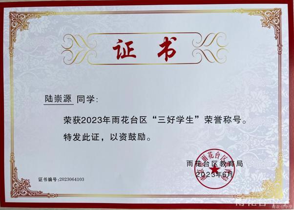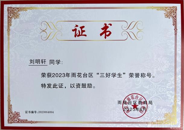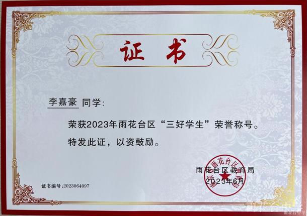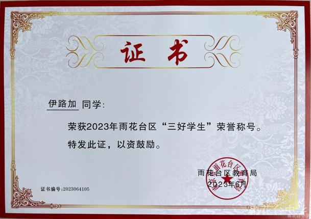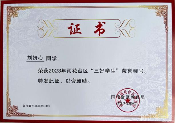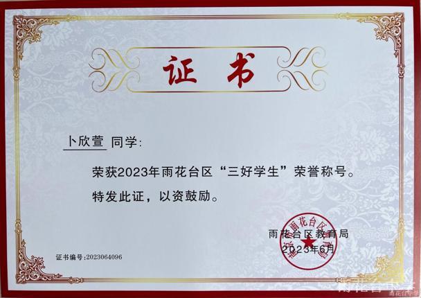 2023年雨花台区“三好学生”
