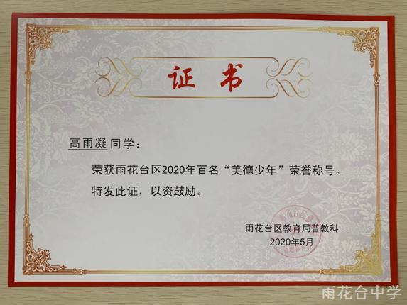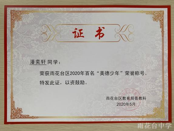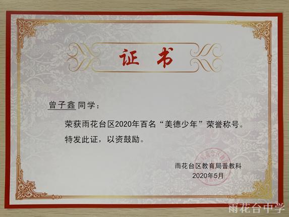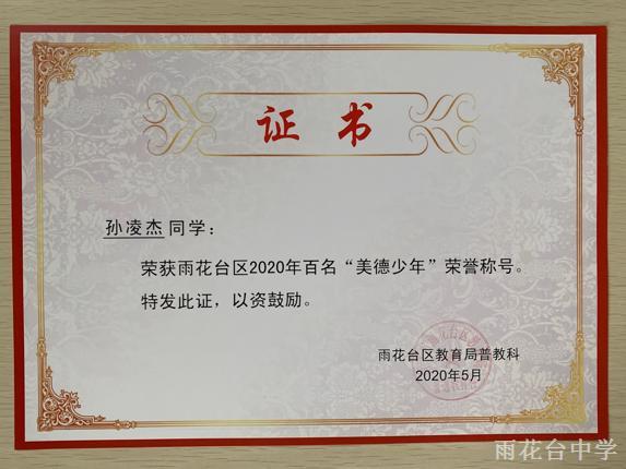雨花台区2020年百名“美德少年”