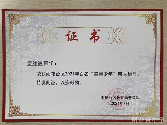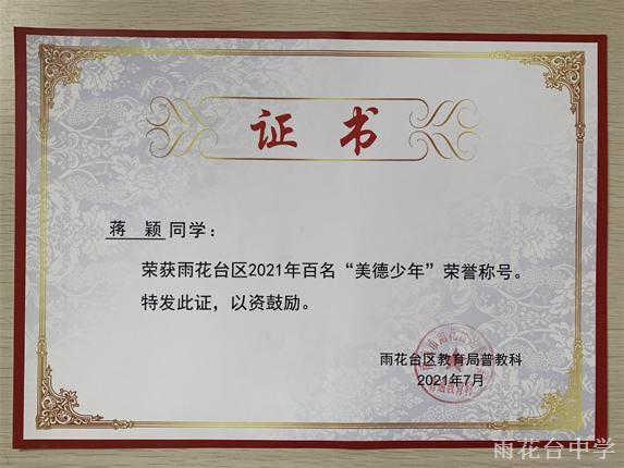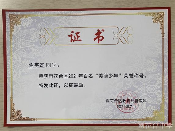 雨花台区2021年百名“美德少年”