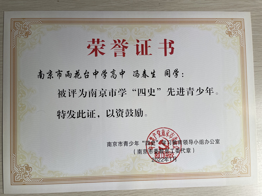 南京市“四史”先进青少年冯春生