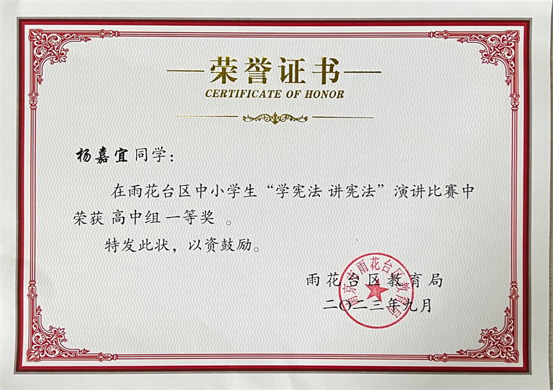 雨花台区中小学生“学宪法 讲宪法”演讲比赛获奖