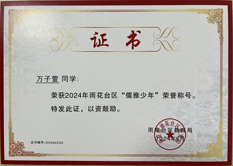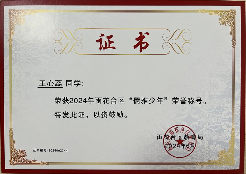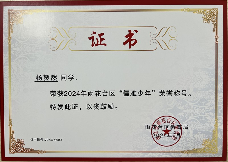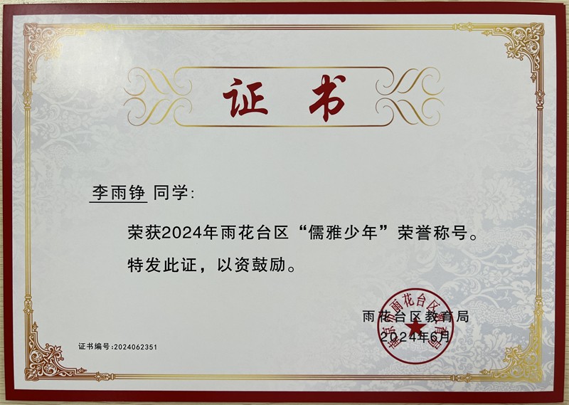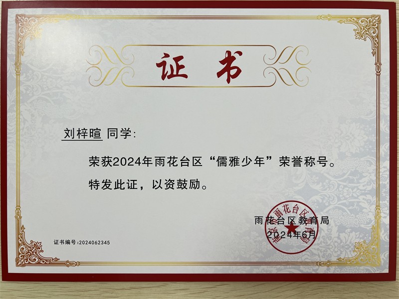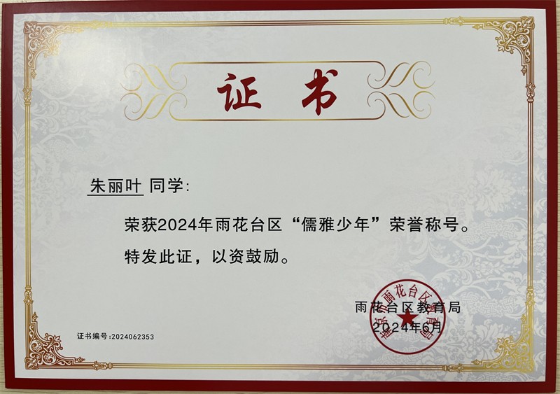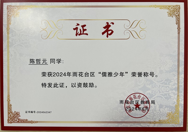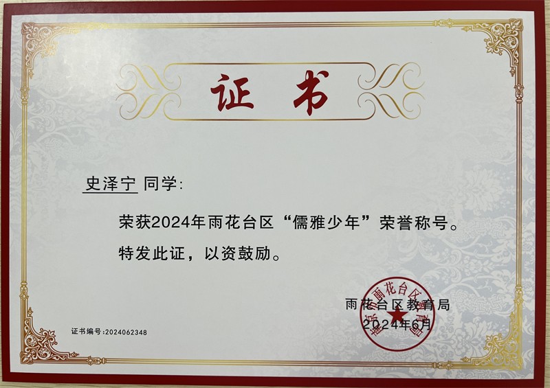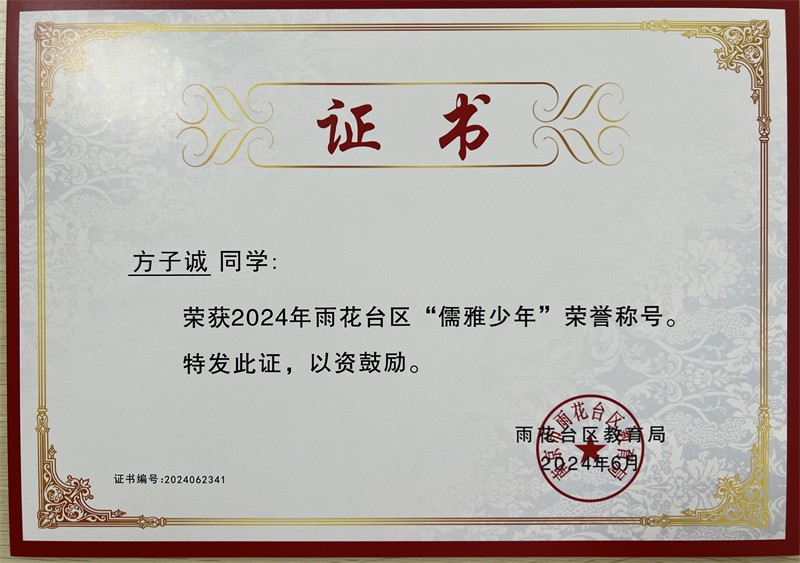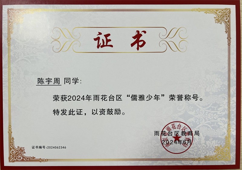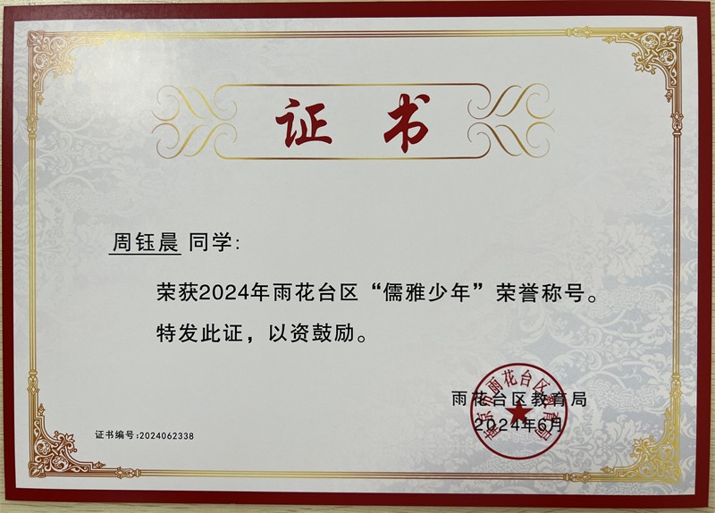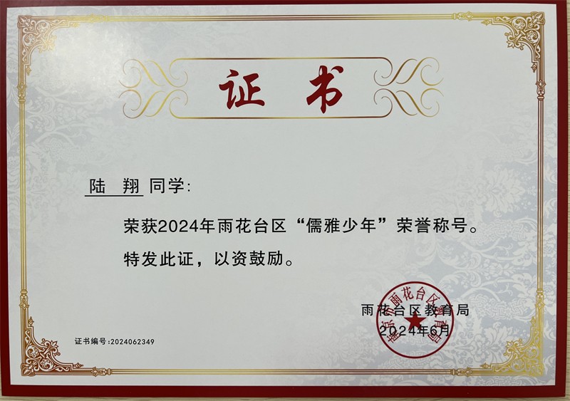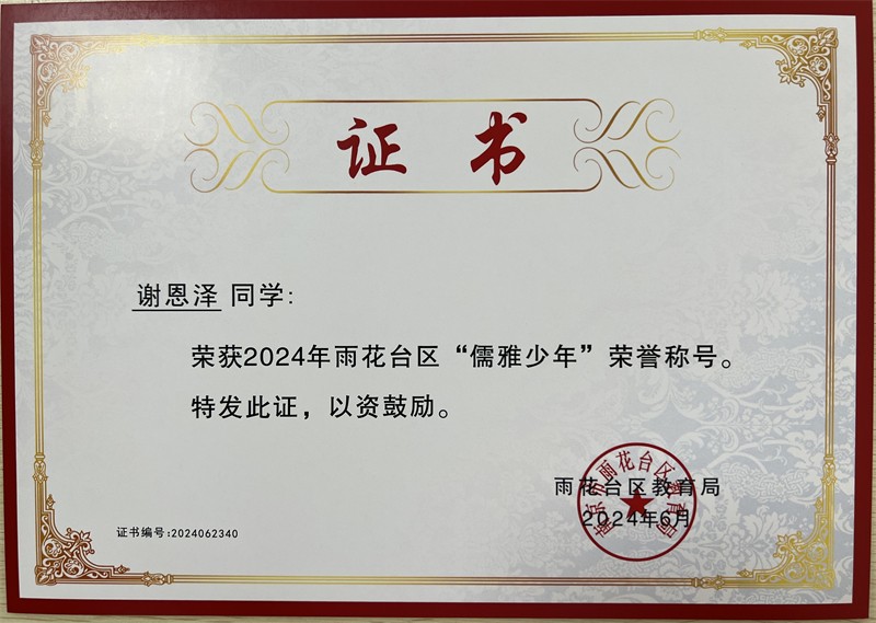 2024年雨花台区“儒雅少年”