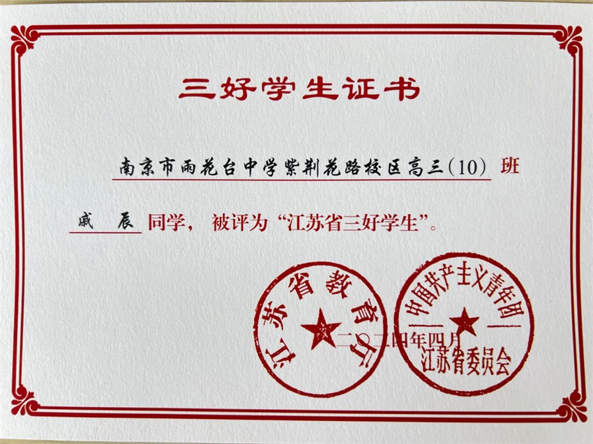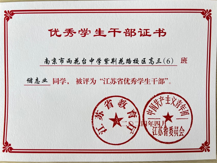 我校9位同学荣获2023-2024学年度南京市普通中小学励志奖学金
