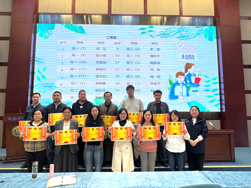 为了进一步加强校园文化建设,营造浓厚的班级文化氛围,增强学生的责任心和集体荣誉感,2024年4月,雨花台中学在国际部负一楼报告厅举行优秀班级文化墙评选表彰活动。王琴副校长、学生工作处方云主任、李发志副主任、尤丽莉副主任、袁锦成副主任及全体班主任出席活动。