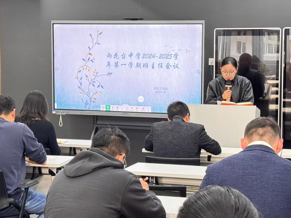 2024年10月30日下午3:30我校在学生成长指导中心召开本学期第二次班主任例会,王琴副校长、学生工作处方云主任、尤丽莉副主任、袁锦成副主任、赵兰妹副主任及全体班主任老师参加会议,会议由尤丽莉副主任主持。