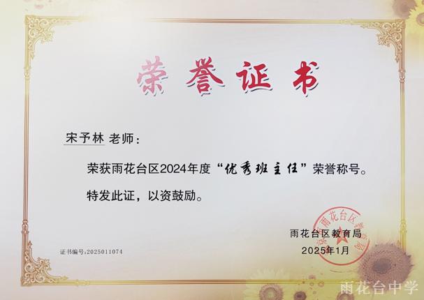 【喜报】我校宋予林老师荣获雨花台区2024年度“优秀班主任”称号