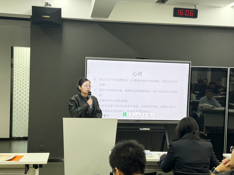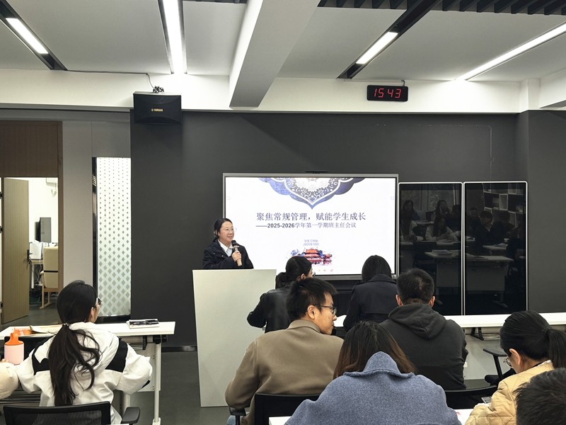 2025年10月22日下午3:40我校在学生成长指导中心召开本学期第二次班主任会议,王琴副校长、学生工作处尤丽莉主任、袁锦成副主任、赵兰妹副主任及全体班主任老师参加会议,会议由赵兰妹副主任主持。