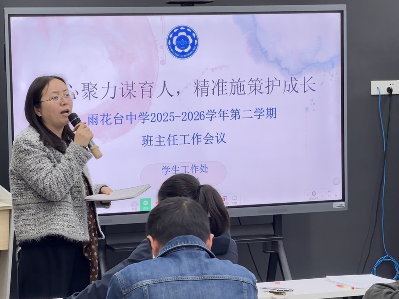 为进一步强化班级管理、夯实德育根基、提升班主任育人水平,2026年4月8日,雨花台中学2025—2026学年第二学期第二次班主任工作会议在成长指导中心顺利召开。我校王琴副校长、学工处尤丽莉主任、赵兰妹副主任及全体班主任参会,会议由赵兰妹副主任主持。