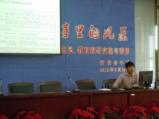 随后,信息技术处的史成宝主任和后勤服务处沈溯老师分别为广大教师详细介绍和展示了如何利用相关软件制作“微课程”以及微课程的上传路径,史主任和沈老师的详细讲解和示范让在座的教师们深受启发,受益良多。