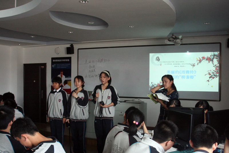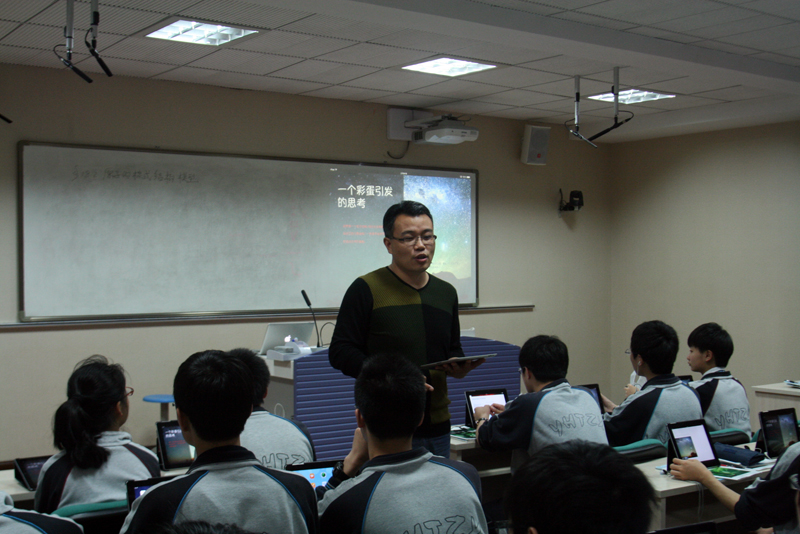 Pad作为一种新的教学手段,如何有效地实现“翻转课堂”?两位上课老师首先向与会老师介绍了学生的前置学习情况及他们的教学理念,让听课老师有备而听。接着,曹颖老师呈现了《美丽的<雨霖铃>》、徐超老师呈现了《原子的核式结构模型》。在听课过程中,市电教馆提供了微信平台,听课老师通过微信对课堂教学进行了精彩的点评:“新技术带来教研形式的变革”、“同样是观察电脑模拟动画,但学生自己操作可多次重复,自己控制思维节奏,比老师大屏幕一次性播放好。阿法粒子散射实验学生在充分观察后回答全面。”、“从语文跨进物理,从诗情画意转入理性思考!”、“和普通的语文课堂相比,展现的内容更丰富。”、“一个在传递文字之美,一个在呈现思维深邃。”、“学生练习的反馈统计,帮助教师即时把握学生掌握情况,有助于后续教学的即时调整”……