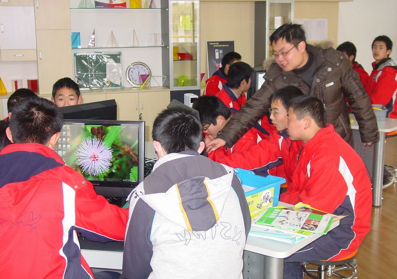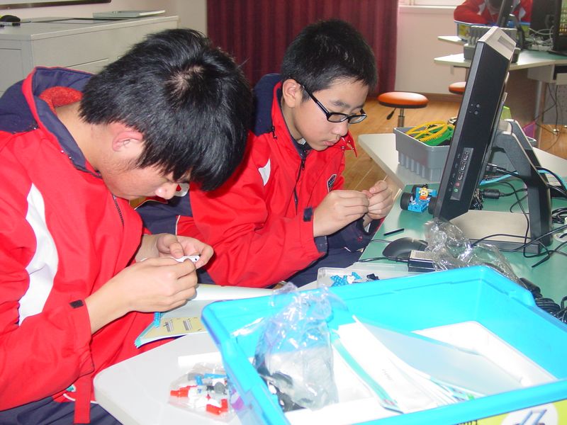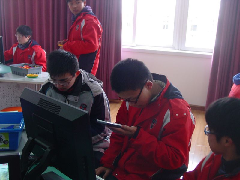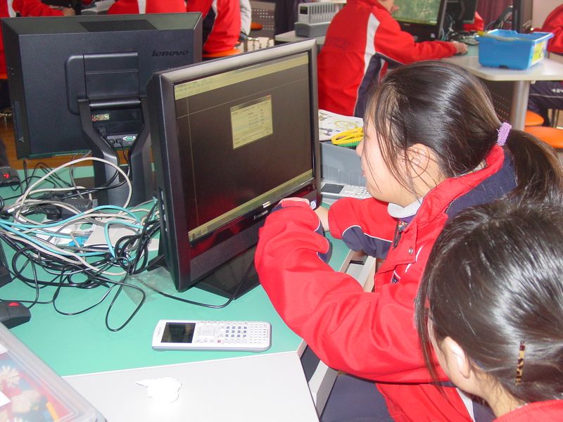 今天中午12点20分,北校区三十多位各年级同学相约来到数字数学实验室,利用数字技术初步体验数学等学科的神奇魅力。大家拿起TI图形计算器摸索摆弄着:“有意思”,有些同学尝试做起仿真物理实验,还有的将零散的乐高、科乐思等组件按图索骥有模有样的拼装起来,高一的同学打开Google Earth软件遨游世界:“看哦,这是我们学校的教学楼” “快来看,这是我家!”,还有的同学欣赏起环保巨片《Home--家园》……,1点半的铃声响起,“老师是不是天天中午都开放?”“那就看你们人来的多不多了!” 大家依依不舍的离开实验室,相约明天再来。