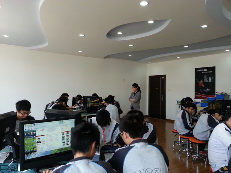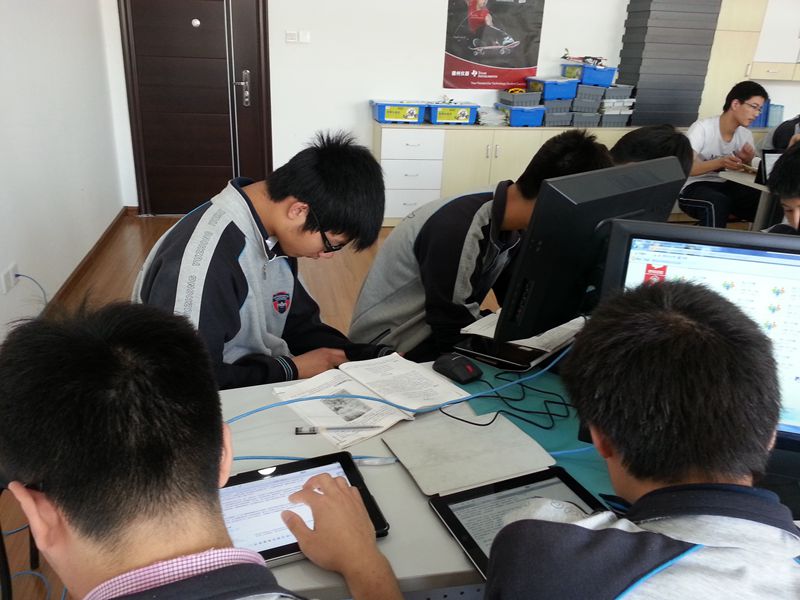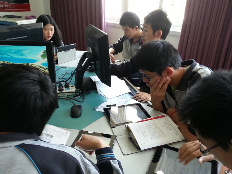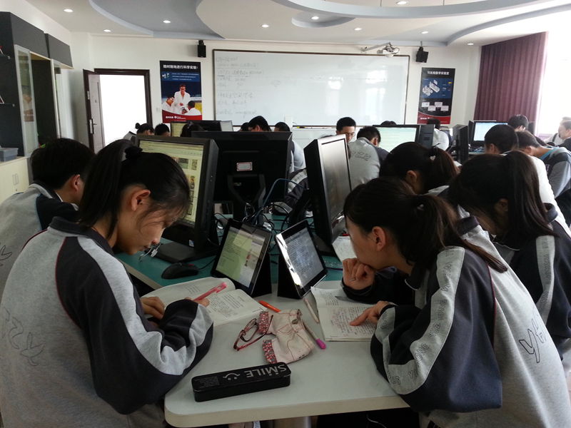 6月3日上午,高二(1)、高二(3)的同学循着课间的音乐先后来到数学实验室上语文课,武霞老师首次借助学校的《师生交互平台》,在基本未做技术层面准备的状况下开始了教学活动,学生们大多能熟练的使用iPad经认证接入校园网,通过访问武老师在网络课堂中构建的《诗国余晖中的晚唐诗》教学单元,按照老师布置的任务进行自主探究学习:有的同学上百度寻觅知识,有的观看老师上传的微视频,还有的浏览老师提供的学习幻灯片,有位同学还留言说老师的PPT中有个错误……