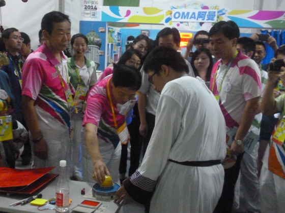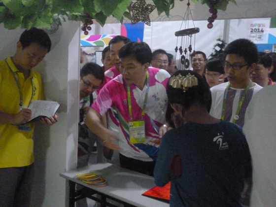 23日晚7时许,南京市人大常委会副主任李奇和南京市副市长胡万进等市领导一行来到我校巴勒斯坦文化小屋,领导们听取我校学生汇报小屋布置情况,兴致勃勃地玩起我们小屋今日新增的非常火爆的套圈游戏, 胡万进副市长对小屋手工拼图非常感兴趣,最后和同学合影留念。