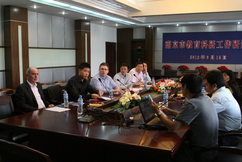 来宾们对我校的园林式景观表示惊叹,对数学数字实验室、录播教室的配备饶有兴趣,对我校的雨花石馆更是惊奇不矣。Darrell Fraser对我校的办学状况、学校信息化硬件设施情况、信息化投入经费状况、校园网络状况、教师办公电脑使用情况都做了详细的调研,信息处史成宝主任一一做了应答,并展示了我校网站中师生空间的强大功能。来宾们对我校的数字化校园建设表示欣赏与赞叹。