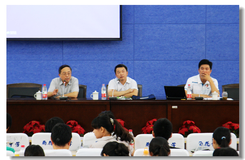 2012年8月31日下午2点,南京市中小学移动网络教室硬件项目实施培训在我校报告厅举办。市教育局发展规划处处长金建新、市电化教育馆馆长陈义柏、市教育装备与勤工俭学办公室主任后有为等领导在主席台就座。参加会议的还有南京市各实验学校的负责领导与教师。我校周茜常务副校长与信息技术处史成宝主任参加了培训。