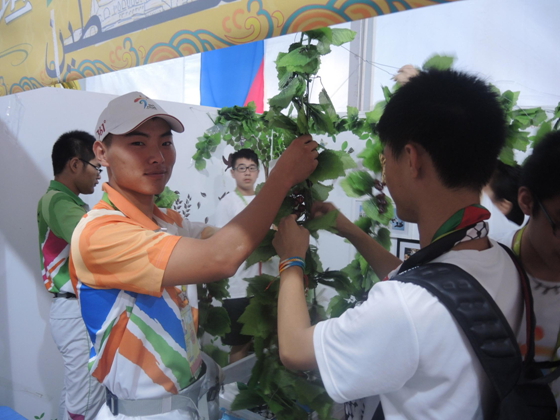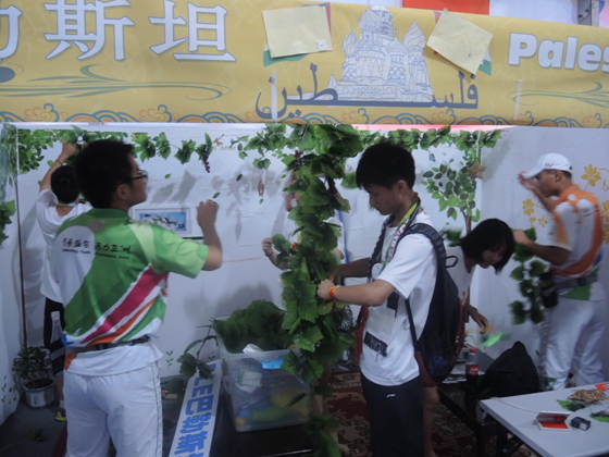 虽然是最后一天,外国运动员来小屋的人数明显减少,但大量访客和志愿者队伍来到我们小屋参与小屋互动,虽然所有奖品已经发完,他们依然玩的不亦乐乎。直到下午4点,我们按规定时间开始撤展,同学们齐心协力,只用不到20分钟就完成任务。高兴的是现场一位安保志愿者是我校2010届高三毕业生丁贺贺同学,现就读于江苏警官学院,他帮助我们撤展以及物资运输工作。下午5点10分同学们在大雨中随车安全抵达学校,正式结束为期三天的亚青文化交流之旅。三天虽然辛苦,我校文化教育代表却收获了很多,他们为中巴两国文化交流和增进两国人民的友谊尽了绵薄之力。