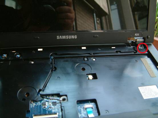 螺丝一定要放好。如果你怕弄错,可以把它们按照原来的相对位置摆在一张白纸上,在电脑转轴两边各有一个Hinge标识,那两个螺丝比别的螺丝粗短,注意别弄错了。我上大学时,宿舍有个哥们替人修录音机,经常会多出几个螺丝什么的,我们就说:“你多修几个就可以再装出一个录音机了。”呵呵。