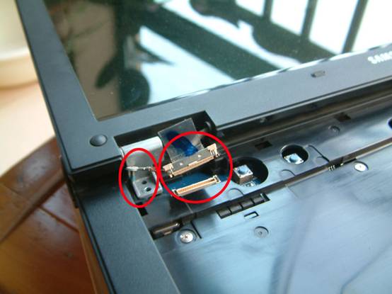 这个更简单了。先把左右转轴处两个银色的螺丝拧下来,注意左边的还有一根编织的地线。先托好显示屏,然后把左边转轴处的显示屏排线取下,拉住排线上的塑料片向上轻轻拉即可。这时显示屏就和主机彻底分离了。