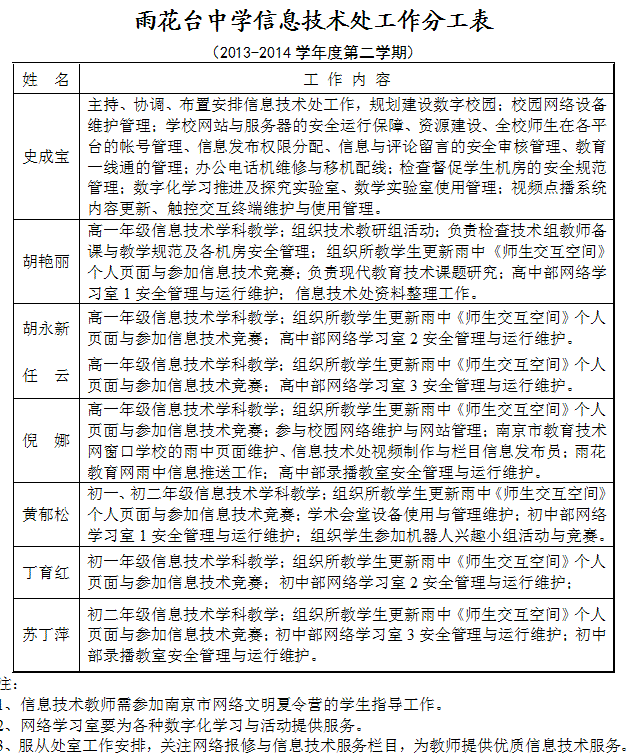 雨花台中学信息技术处工作计划(2013-2014学年度第二学期)