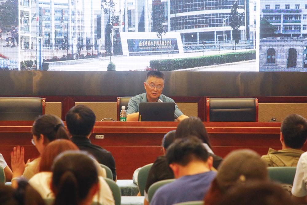参观后,我校汤家合副校长代表学校向代表团的远道而来表示欢迎。汤校长全面介绍了我校的办学沿革和办学特色,并针对“三新”背景下教育教学创新与代表团作了深入交流。