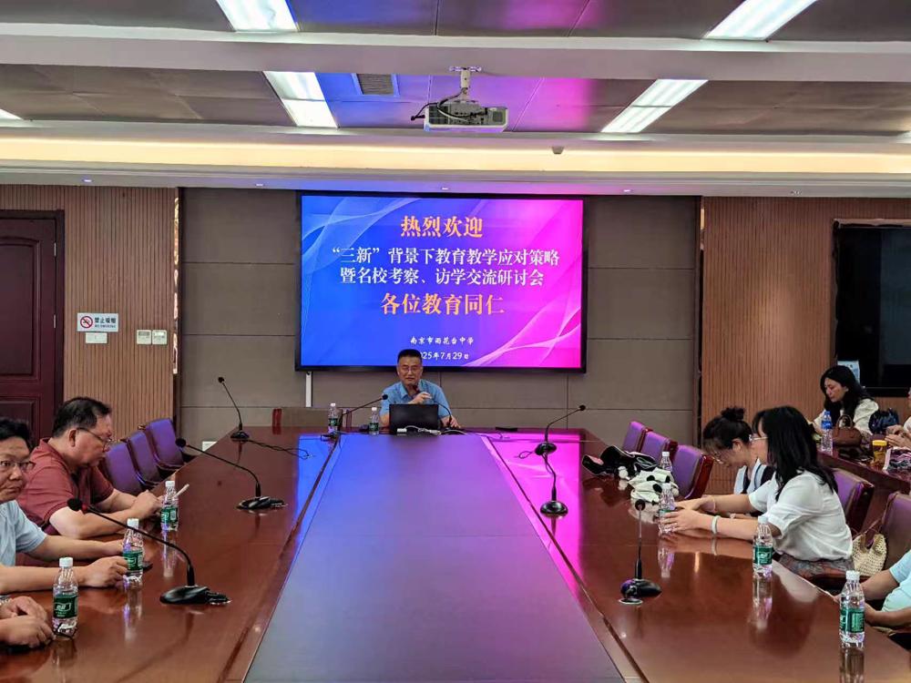 参观后,我校汤家合副校长代表学校向代表团的远道而来表示欢迎。汤校长全面介绍了我校的办学沿革和办学特色,并针对“三新”背景下教育教学创新与代表团作了深入交流。