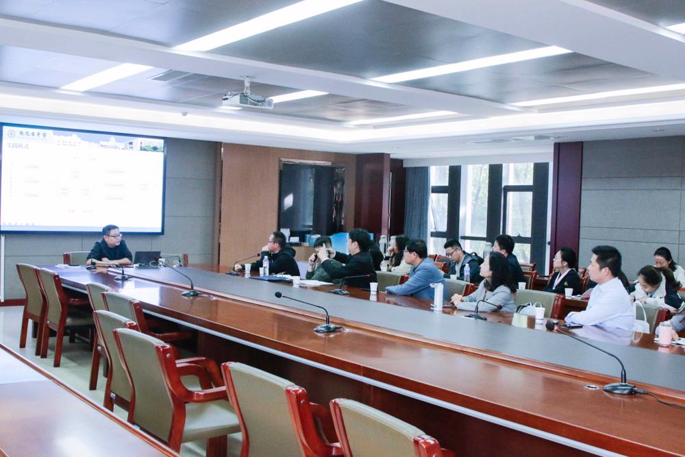 参观后,我校课程服务处副主任、学校科学教育实践中心负责人吴志强代表学校向代表团的远道而来表示欢迎。吴主任全面介绍了我校的科学教育发展历程与特色举措,并针对科学教育在中学的落地抓手与思路与代表团作了深入交流。
