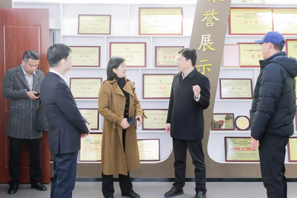 我校党委书记赵光辉代表学校热情迎接了专家组及各级领导,并带领专家组先后走进江苏省校园足球课程基地、雨花石博物馆、体艺楼四楼体育馆及运动场,全方位了解学校体育工作开展情况。在校园足球课程基地,专家组仔细询问课程设置、教学资源配备及学生参与情况,赵光辉书记结合学生成长案例,详细介绍了学校“足球育人”的理念。