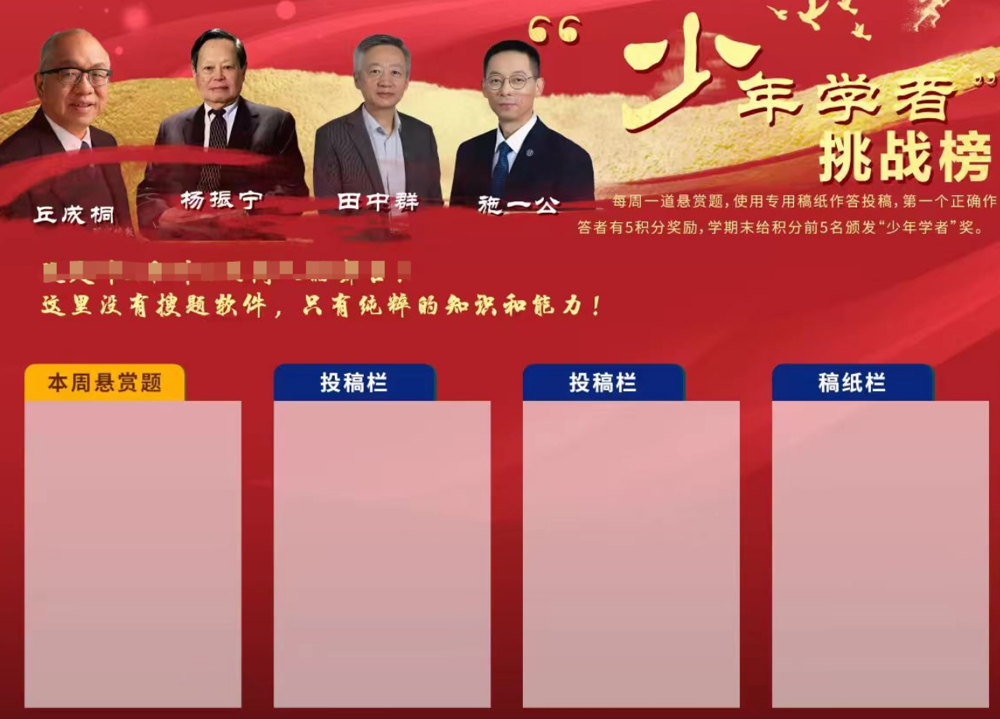 2025年9月15日,雨花台中学高二年级推出“校园学者挑战榜”活动,每周发布一道学科难题,鼓励学生挑战思维、以赛促学。