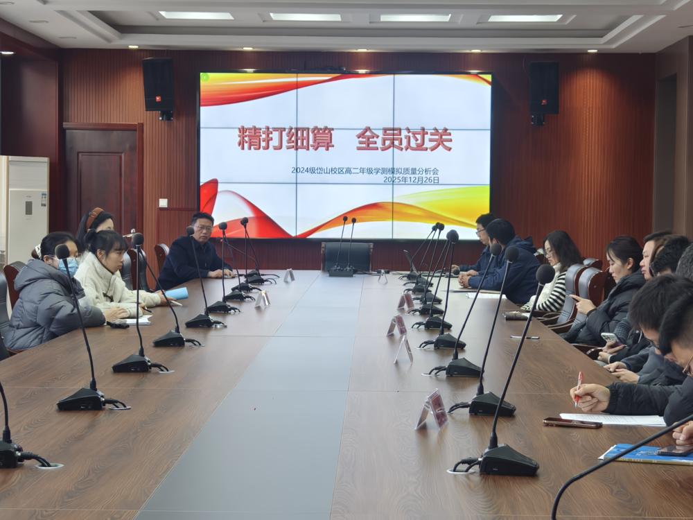 为精准研判学业水平合格性考试模拟情况,明确后续教学发力方向,确保实现 “全员过关”的目标,2025年12月26日,雨花台中学岱山校区高二年级召开学测模拟质量分析会。全体高二班主任及学科任课教师参会,围绕两次学测模拟数据展开深度研讨,凝聚教学共识,部署冲刺举措。