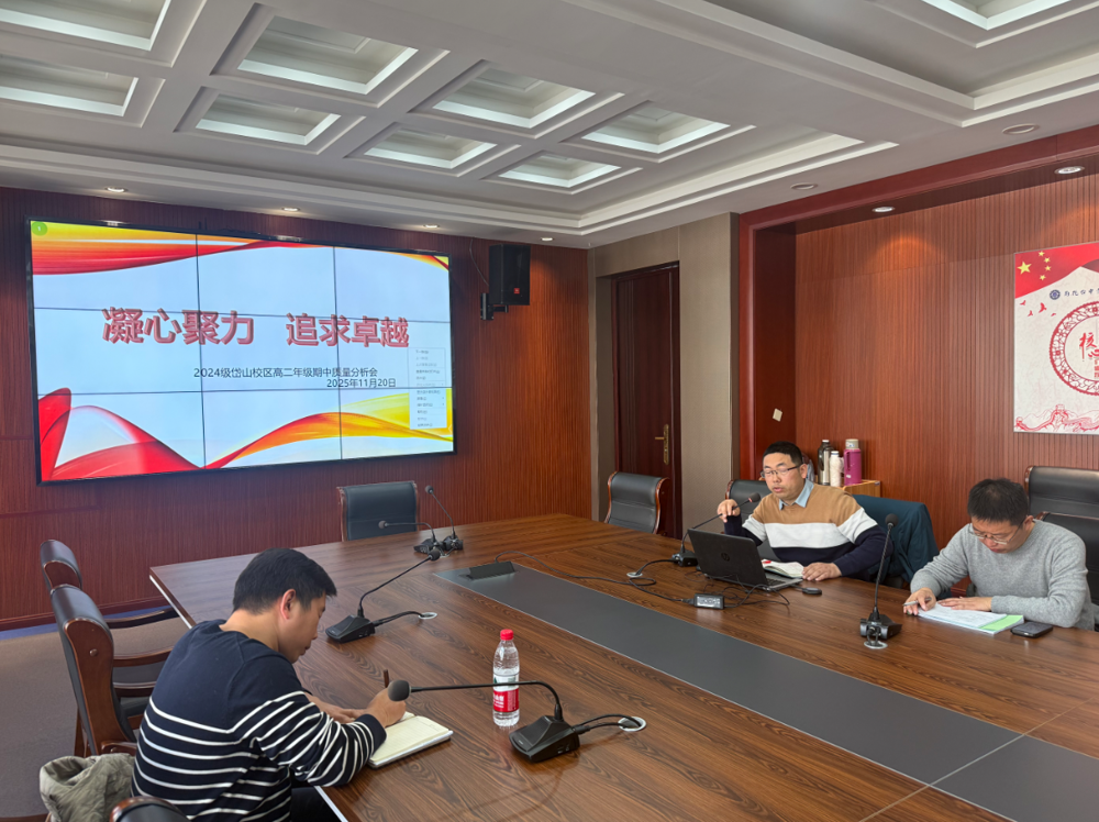 为精准复盘期中考试成效,明确后续教学与管理的优化方向,2025年11月20日中午,雨花台中学岱山校区高二年级在行政楼三楼会议室举行期中质量分析会。会议由高二年级部程永军主任主持,勾俊华副校长、方云副校长及全体高二年级任课教师参加会议。
