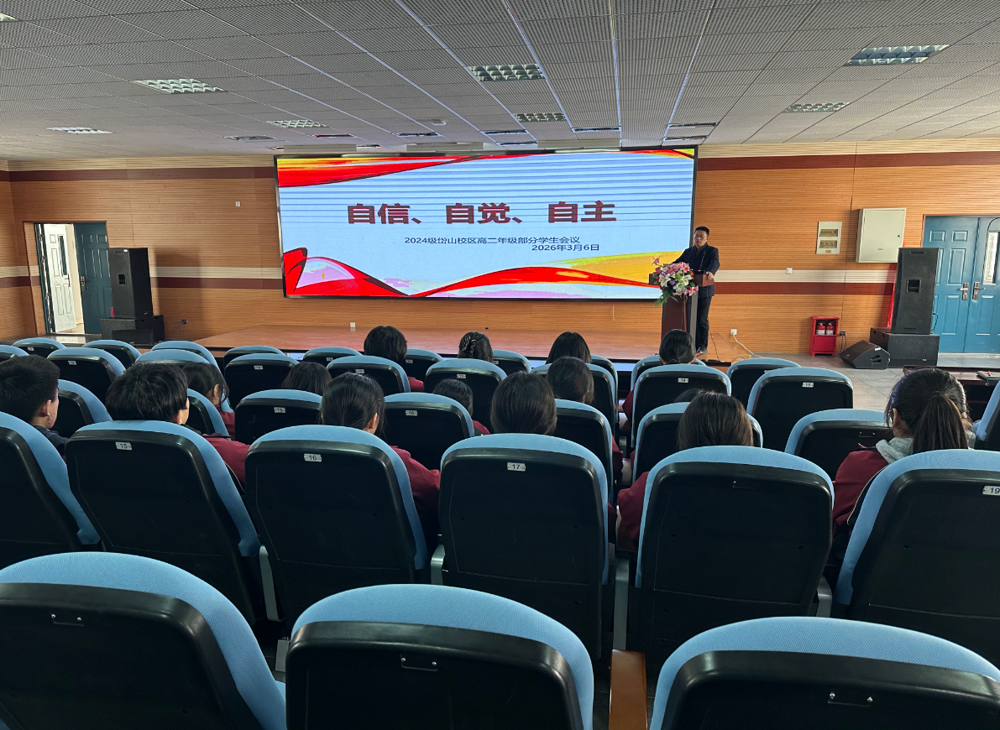 为帮助部分高二学子找准定位、突破瓶颈,树立积极向上的学习心态,2026年3月6日,雨花台中学岱山校区高二年级召开学生会议。本次会议以自信、自觉、自主为核心主题,为在场学子明晰前行方向、传授学习方法、注入奋进力量。