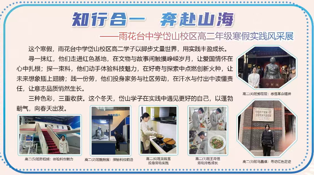 为落实立德树人根本任务,引领学生全面发展,展现新时代学子的良好风貌,岱山中学高二年级在寒假期间开展红色教育、科技教育与劳动实践系列活动,让学生在沉浸式体验中悟思想,以多元实践为青春成长赋能。