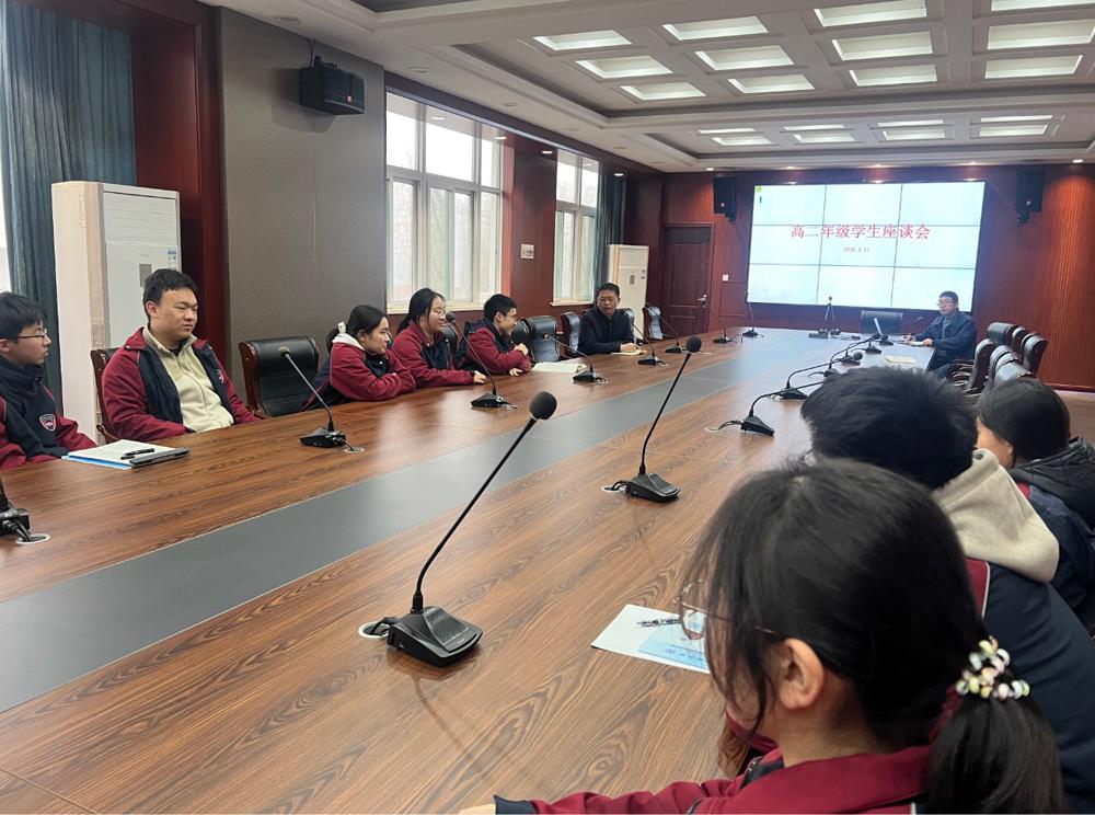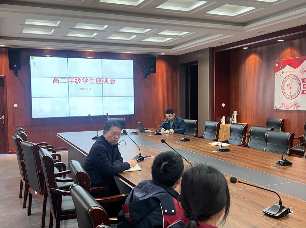 为深入了解学生学习生活实况,畅通师生沟通渠道,2026年3月17日,雨花台中学岱山校区高二年级召开学生代表座谈会。