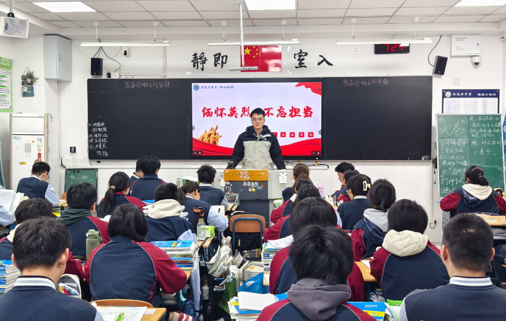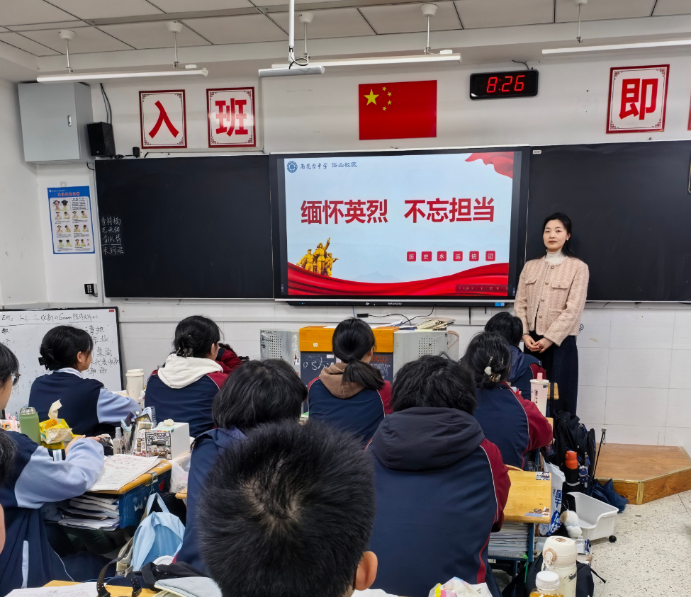 为传承中华优秀传统文化,厚植爱国主义情怀,引导青年学子铭记历史、致敬英烈、勇担时代使命。2026年4月1日,南京市雨花台中学岱山校区高二年级全体班级召开 “缅怀英烈,不忘担当” 主题班会,在追思与感悟中上好一堂生动的思政教育课。