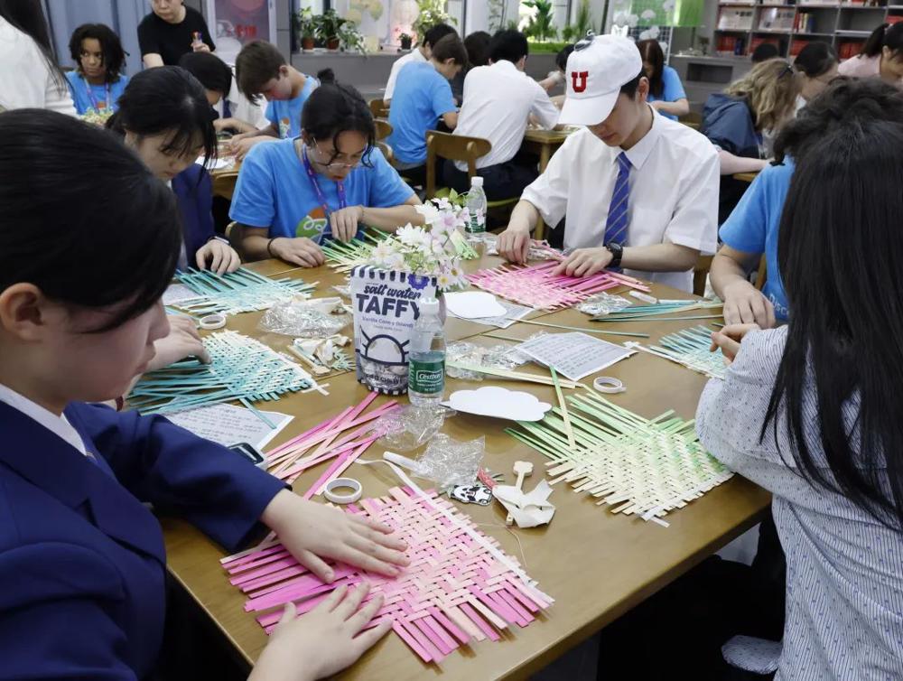 在文化体验活动中,中美学生共同沉浸于传统文化的魅力。在手工拼装模型与制作竹扇的过程中,美国学生亲手触摸、感受中国传统文化的魅力。中方学生化身 “文化小使者”,耐心地向美国伙伴介绍制作方法与背后的文化故事,在实践与互动中,实现了中华文化的生动传播。美国学生也通过亲身体验,对中国文化有了更直观、更深刻的认识。