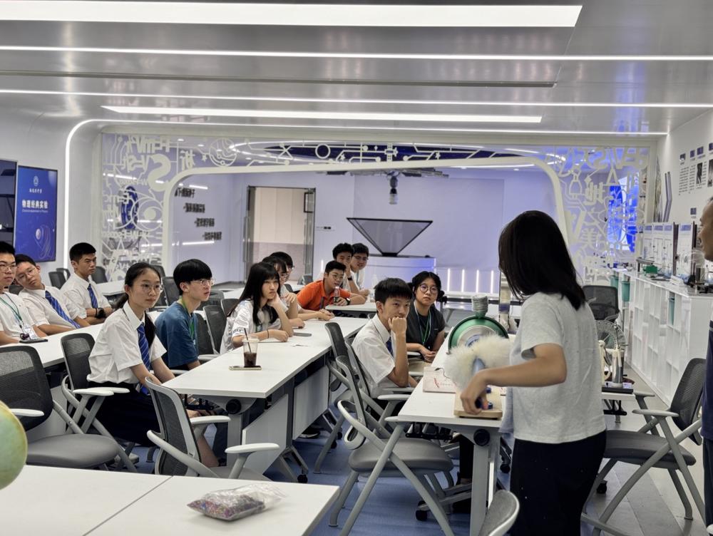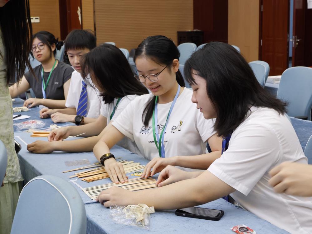 本次交流活动巧妙融合了科学与人文:在趣味理科实验课堂,两地学生在老师的引导下合作探索静电的奇妙现象,科学魅力瞬间打破地域隔阂。而在非遗文化体验环节,师生共同沉浸于竹扇制作,指尖翻飞间,篾片渐成风雅扇骨,古老技艺在协作中焕发新生,无声地传递着中华文化的深厚底蕴。