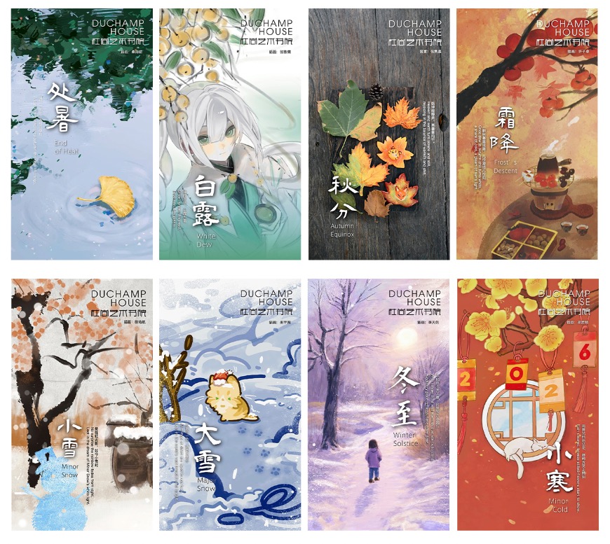 自两年前启动以来,杜尚艺术书院的“二十四节气”项目,便成为一届届同学观察自然、感知传统、表达当下的艺术修行。这是一场持续的美学接力:每个节气,都有一位同学接过创作“接力棒”。从“立春”的萌动到“大寒”的静谧,我们用画笔共同书写了一套独特的“时光手帐”。