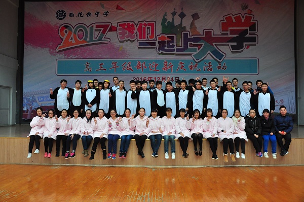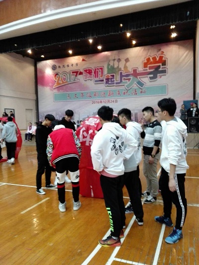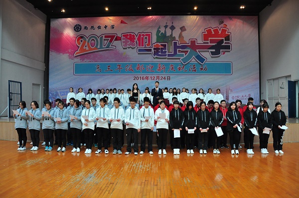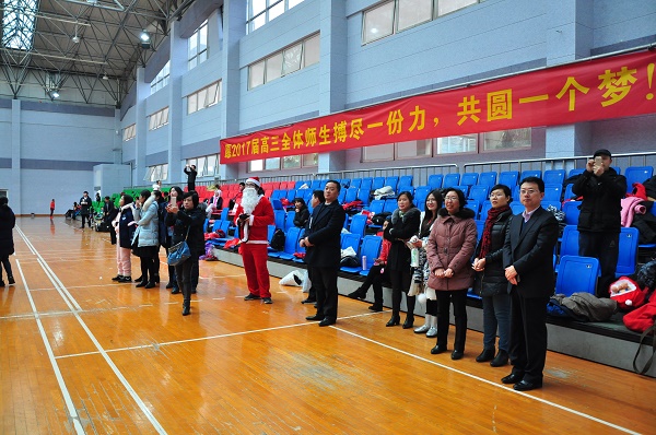 12月24号,正值圣诞节和元旦来临之际,高三年级部举办了“2017年,我们一起上大学”的迎新活动。活动在高三(8)班和高三(10)的诗朗诵中开始,同学们饱含激情,读出了高三的艰辛,也宣誓了必胜的决心。接着,是各班精心编排的兔子舞展示,在“舞林大会”的旗帜下,神奇的小动物,逼真的cosplay,活泼的圣诞老人将全场的气氛一次次推向高潮。为了增强各班的凝聚力,年级部还组织了包括“两人夹球”、“三人四足”和“无敌风火轮”三个项目的趣味体育比赛。在比赛过程中,同学们团结拼搏,争先恐后,尖叫声、欢呼声、跺脚声响彻了整个体育馆。在紧张的比赛后,由六名同学带来了粤语歌曲《红日》,唱出了战胜困难的决心和必胜的信念。最后,孙进副校长和邱荣主任为获奖班级颁奖。整场活动在同学们的欢声笑语中落下了帷幕。新的一年即将到来,相信在全体高三人的努力下,我们定能实现自己的梦想。2017年,我们一起上大学!