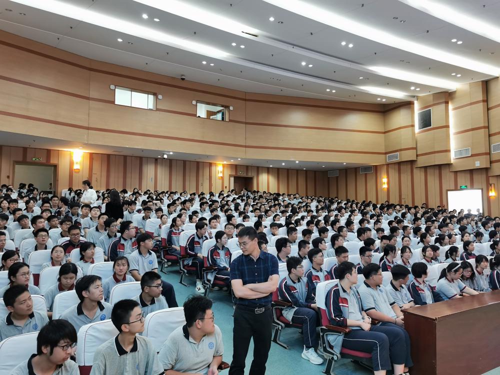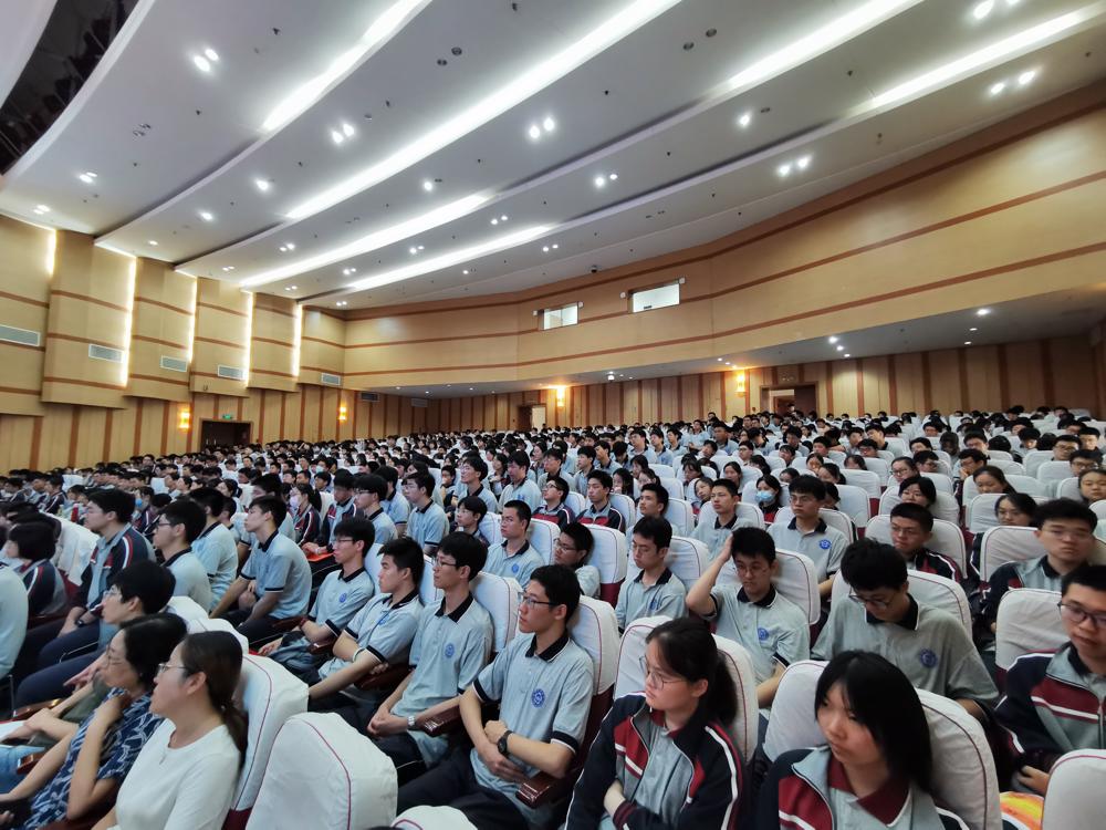 最后赵光辉校长表扬了高三全体同学在本次学情调研中的表现,同时强调每一次的考试都要总结反思,他提到复习迎考的过程意义非凡,参加高考是人生的一次历练,是终生难忘的经历。接着,赵校长给同学们分享了两幅画面:第一幅是临考图。每年高考时,当考场警戒线放下,允许学生进入考点后,学生像潮水一样涌入考场,行走在路上的每位考生表情各异,或微笑或凝重,但内心都是不安着的,而老师们也在考生入场前,和他们握手、拥抱,不断地鼓励着他们。这一刻,他们即将迎来真正的高考,这一张试卷凝聚了十二年的辛苦和知识,而机会,是给那些做了充足准备的人。第二幅画是查分图。6月24日晚可以查成绩了,班主任们在下午四五点就到学校急切地等候着知晓学生们的成绩。社会上,街头巷尾都在等候与讨论高考成绩,而平时那些嘴上说着不在乎成绩的学生其实也在带着不安或愧疚查询着成绩。