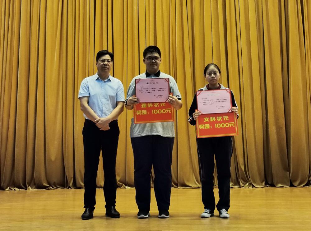 接着由王琴副校长宣读班级状元、单科状元、文科二到三名、理科二到五名和年级文理科状元等“校长特别奖”获得者名单。由赵光辉校长、王琴副校长和胡景月主任为获奖者颁奖。